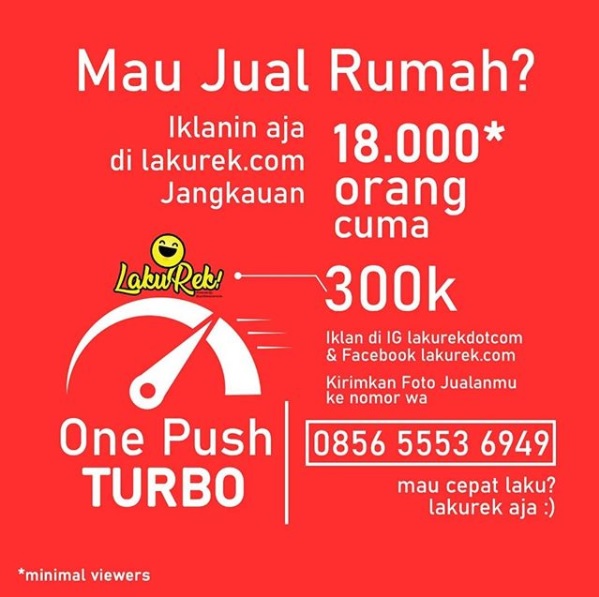 Paket non langganan, tanpa akun, di iklankan di akun lakurekdotcom, up to 18.000 orang yang melihat iklanmu, cocok untuk iklan jual beli rumah atau kendaraan